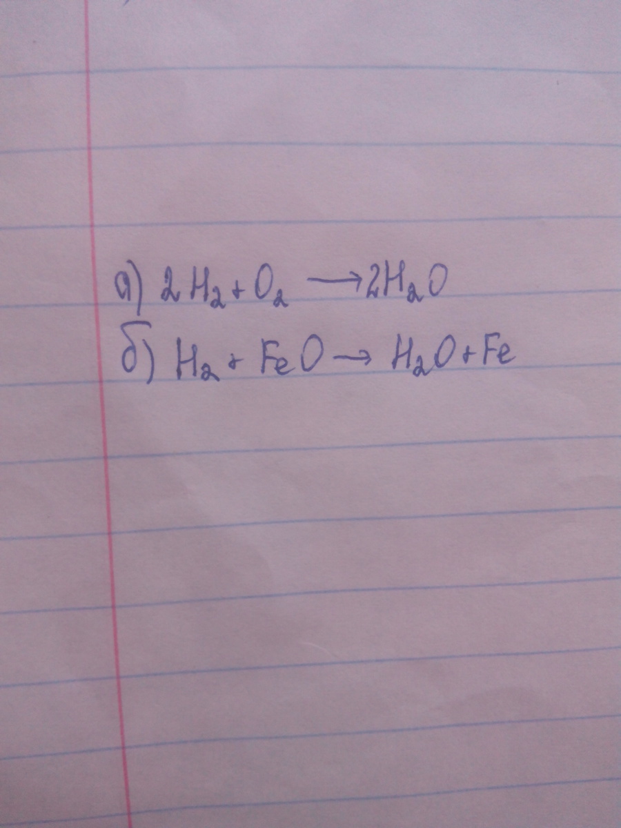 напишите уравнение химической реакции между водородом и следующими веществами: а) кислородом; б) оксидом железа; в) натрием; г) азотом (в образовавшемся соединении азот трехвалентен); д) оксидом никеля