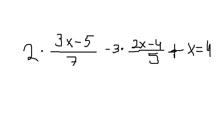 2(3x-5)/7-3(2x-4)/5+x=4 домножим все на 35, чтобы убрать знаменатели