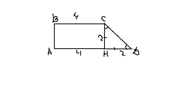 ∠ НСD=45°, тогда ∠СDН=180-90-45=45°⇒ треугольник НСD - равнобедренный. СН=СD=2.