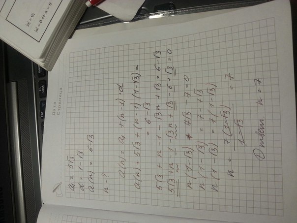 6-√3=5√3+(n-1)·(1-√3); 6-√3=5√3+n-1-√3·n+√3; n-√3·n=6-√3-5√3-√3+1; n(1-√3)=7-7√3; n(1-√3)=7(1-√3); n=7