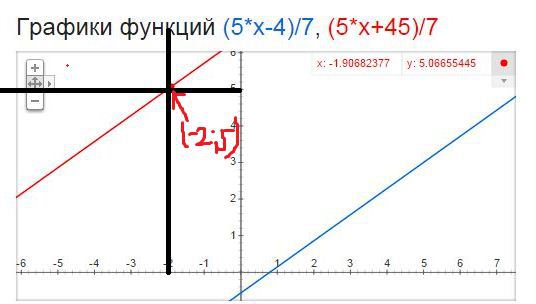 a=5 и b=7 влияют на наклон прямой,а с=4-- на положение. Поэтому мы не можем менять коэффициенты a и b,тогда подставляем координаты в уравнение и ищем коэффициент c: