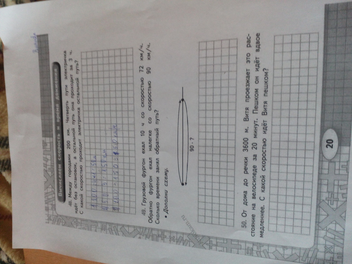 грузовой фургон ехал в 10:00 со скоростью 72 километров час обратно в фургон ехал со скоростью 90 километров в час сколько времени займет работа на пути