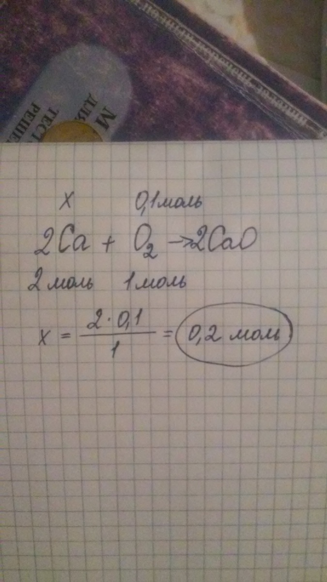 а)Сколько молей кальция вступит в реакцию с 0.1 моль кислорода?