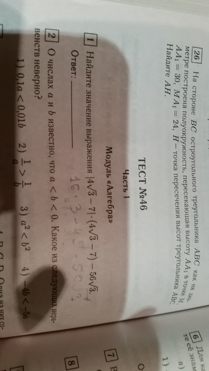 получим (4корень из 3 -7)в квадрате - 56 корень из3= 48 - 56корень из 3 +49 - 56 корень из 3=48+49=97