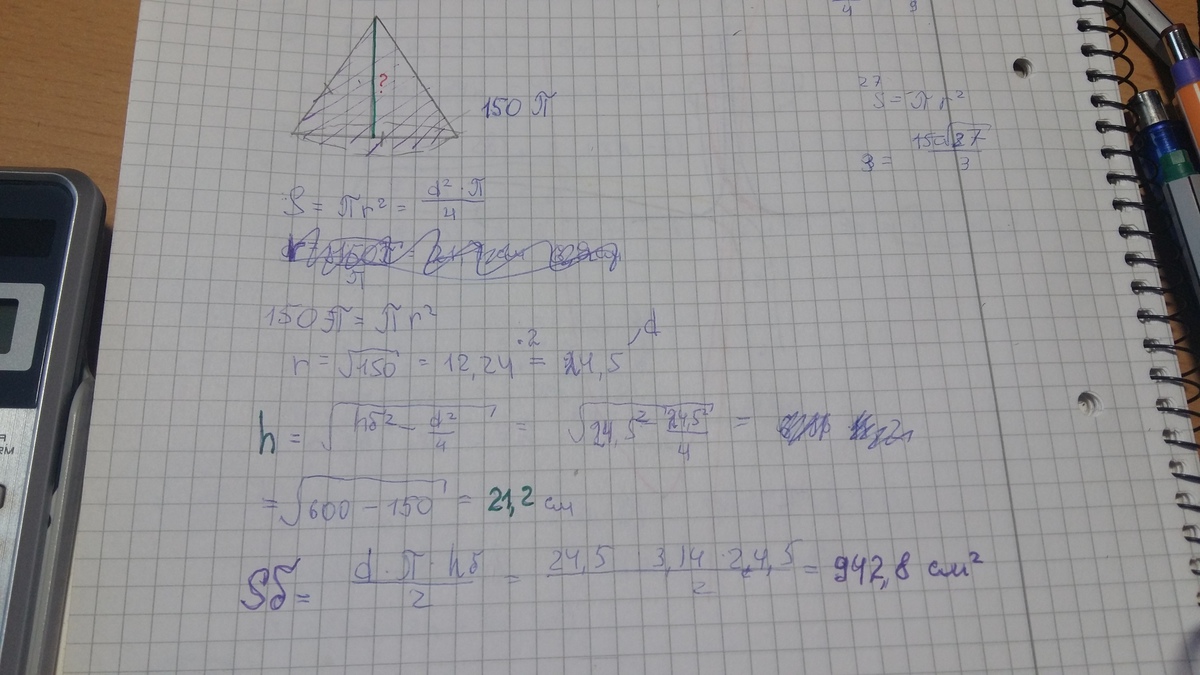 ааа. я понял. я не правильно условие прочитал. там дана площадь боковой поверхности, а не площадь основания. переделаю, как время появится