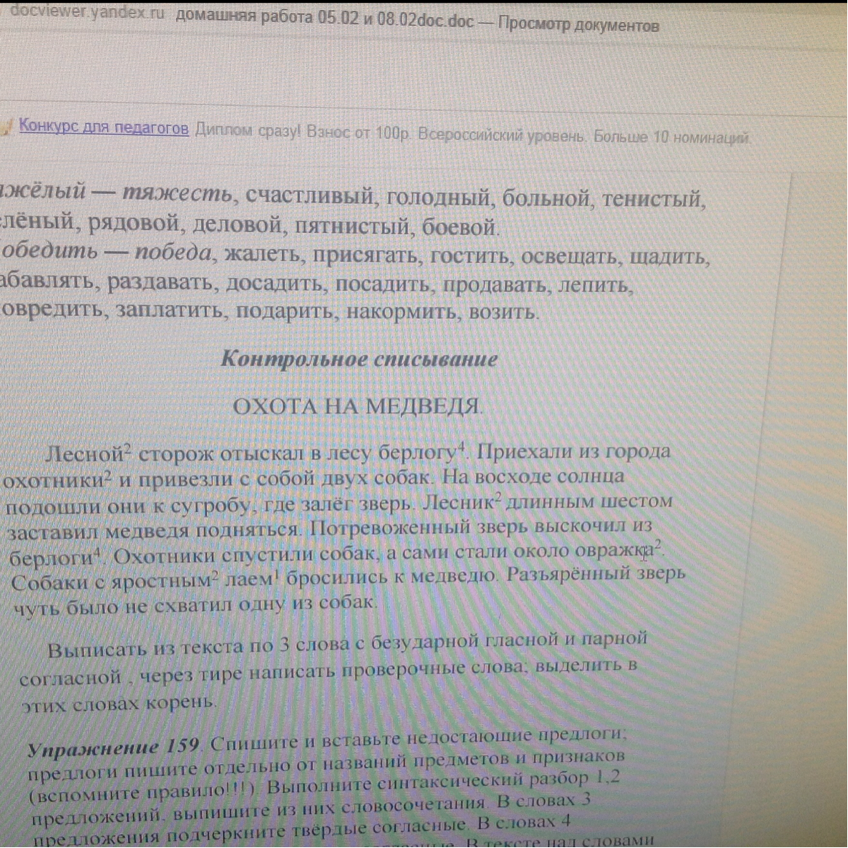 Охота на медведя помогите выписать из текста по 3 слова с безударной гласной и парной согласной через тире написать проверочные слова
