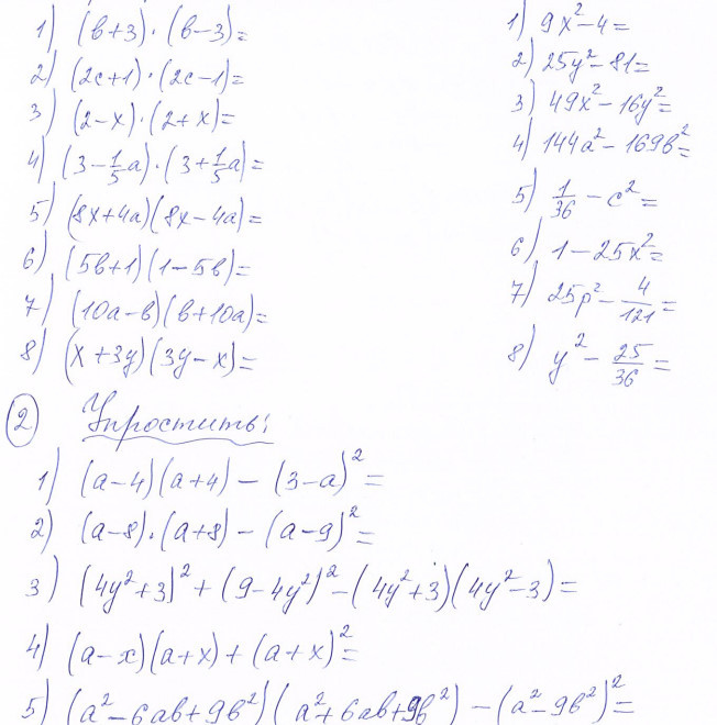 3) 4 - x^2; (7x - 4y) (7x + 4y)
