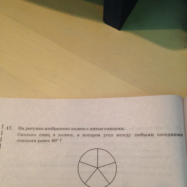 Сколько спиц в колесе, в котором угол между любыми соседними спицами равен 60 градусам? Полное решение пожалуйста!!!!