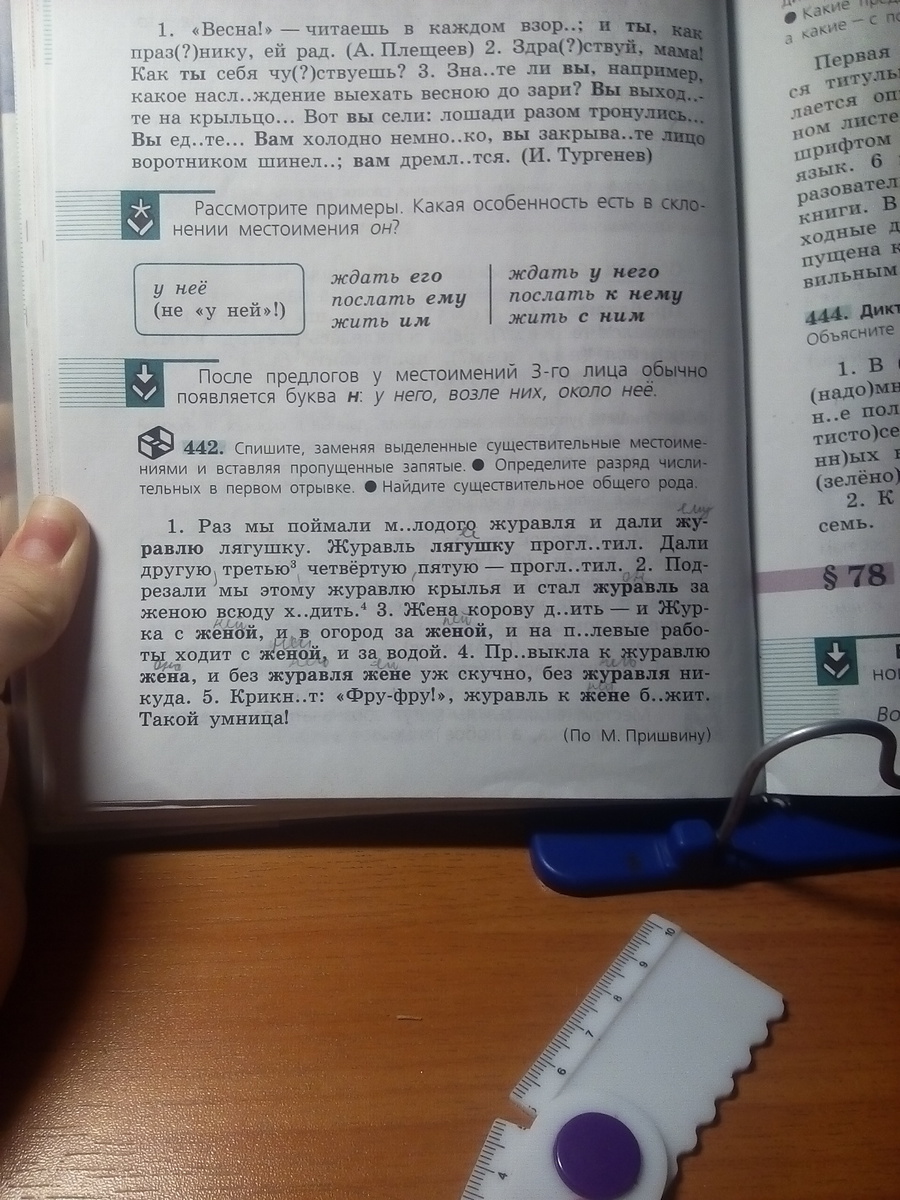 1.Раз мы поймали молодого журавля и дали ему лягушку. Журавль её проглотил. Дали другую, третью ( порядковое) , четвертую( порядк. ) , пятую ( порядк. ) - проглотил.Подрезали мы этому журавлю крылья, и стал он за женою всюду ходить. Жена корову доить - и Журка за ней, и в огород за ней, и на полевые колхозные работы ходит с ней, и за водой. Привыкла к журавлю она, и без него ей уже скучно, без него некуда. Крикнет :"Фру- фру!", журавль к ней бежит.Такой умница ( общий род ) !
