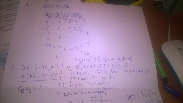 2.Массовая доля углерода и водорода в углеводороде составляют соответственно 85,71% и 14,29%. Приведите молекулярную и структурную формулу данного вещества, если известно,что одна эта молекула содержит четыре атома водорода .