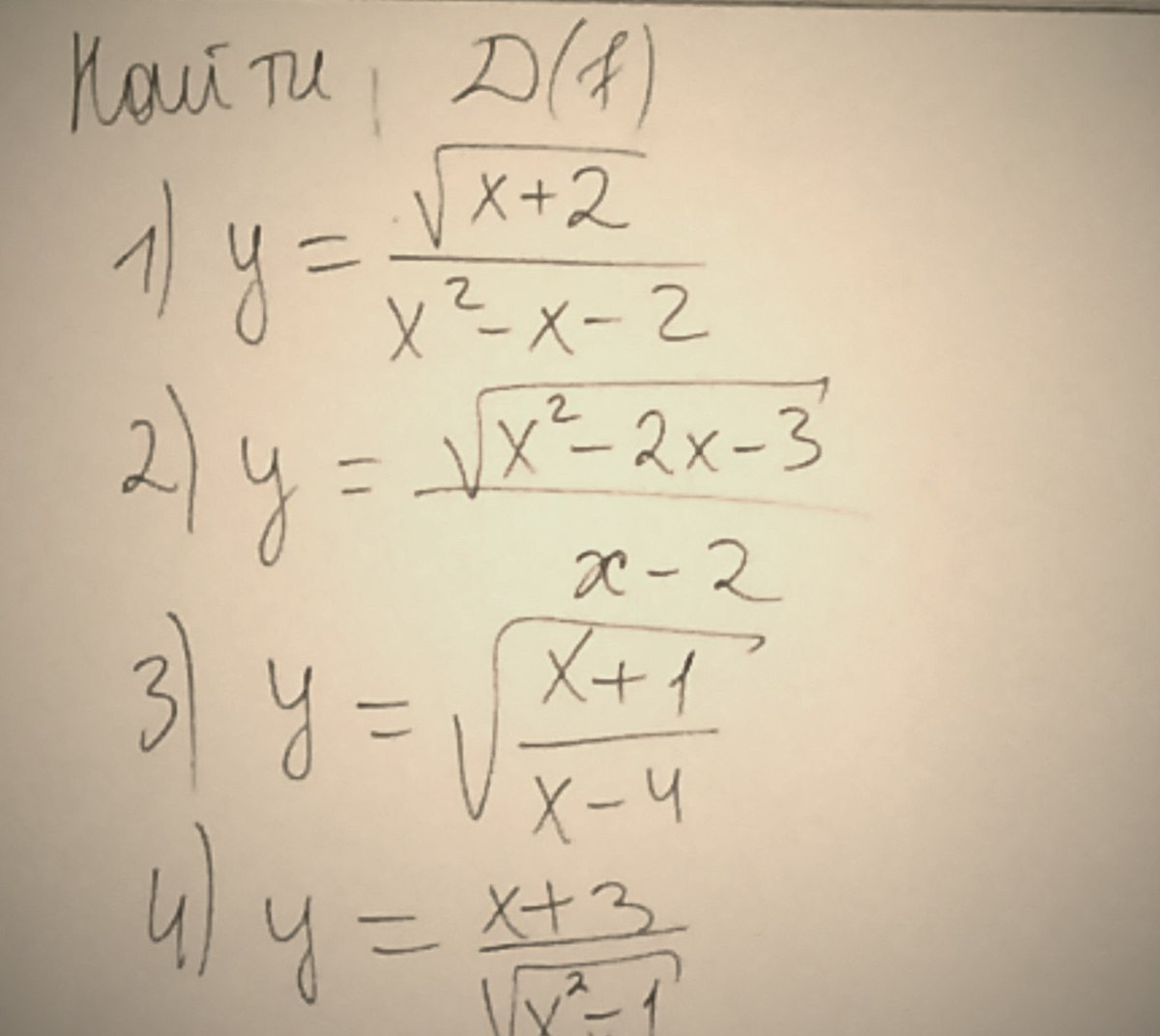 y=√x+2/(x²-x-2 {x+2≥0 x²-x-2≠0 2) {x≥-2 x≠2 x≠-1 x∈[-2. -1). (-1. 2) (2. ∞)