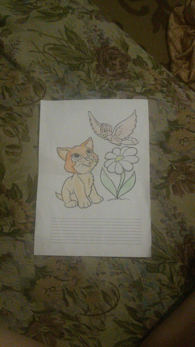 Кот Барсик очень любил цветы. Он ходил на полянку и нюхал все-все-все цветы. Но вот однажды Барсик пришёл на полянку и заметил там чужака. Он выглядел странно. Барсик говорит: "Ты кто?". А чужак отвечает: "Я птичка". Барсик "А ты тоже любишь цветы, как и я? А давай дружить?" Птичка: "А давай!" Конец