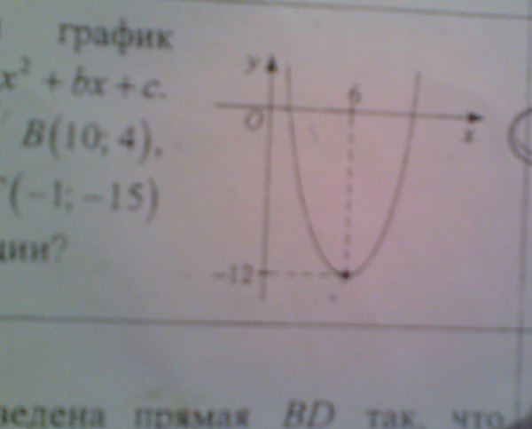 На рисунке изображен график квадратичной функции y=x^2+bx+c.