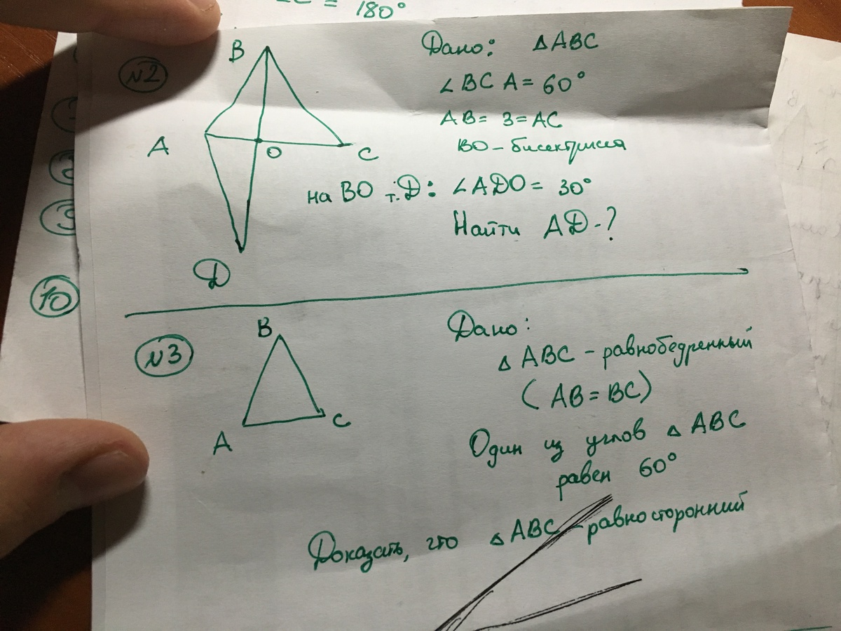 2)<B=60⇒<A=<C=(180-<B):2=(180-60):2=60⇒ΔABC-равносторонний