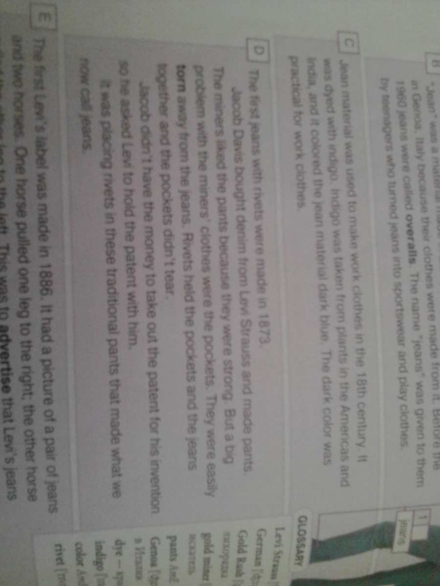 Первые джинсы с заклепками были сделаны в 1873 году Якоб Дэвис купил денима от Levi Strauss и сделал брюки Шахтеры понравились брюки, потому что они были сильны Но большая проблема с шахтерами одежды были карманы. Они легко оторвать от джинсов. Заклепки проведены выемки и джинсы вместе и карманы не оторвать Иаков не имеют денег, чтобы взять патент на свое изобретение он попросил Леви провести патент с ним. сделал то, что мы Было размещения заклепки в этих традиционных брюки, которые теперь называем джинсы.