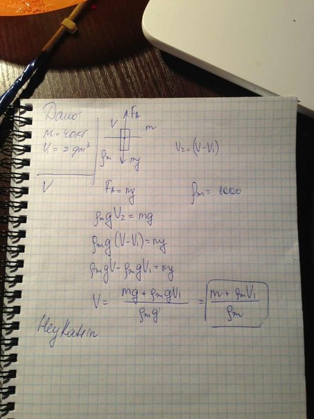 мальчик масса которого 40 килограмм держится на воде.та часть тела которая находится над поверхностью воды имеет объем 2 дециметра в кубе определить объем всего тела мальчика нормально решите пожалуйста. Как и надо в физике