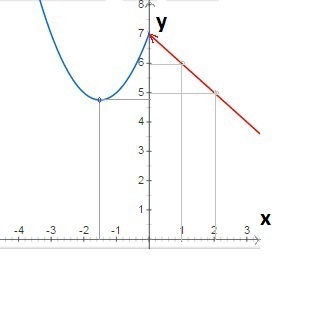 пересечение с осью ОУ в точке x=0 y=7 (0,7)