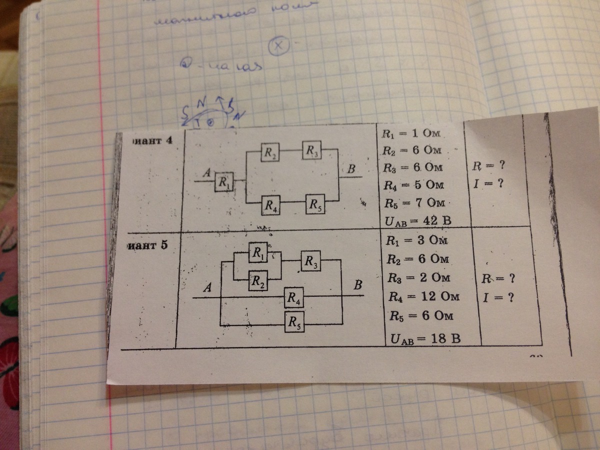 R=r1+((r2+r3)×(r4+r5))/(r2+r3+r4+r5)=1+((6+6)×(5+7))/(6+6+5+7)=7 Ом