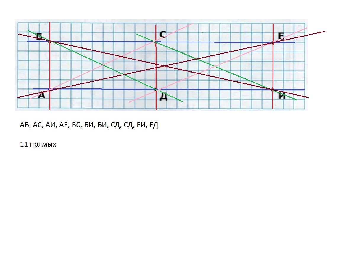 сколько различных прчмых можно получить , если проводить их через каждую пару отмеченных точек? Начерти эти прямые и запиши их обозначения.