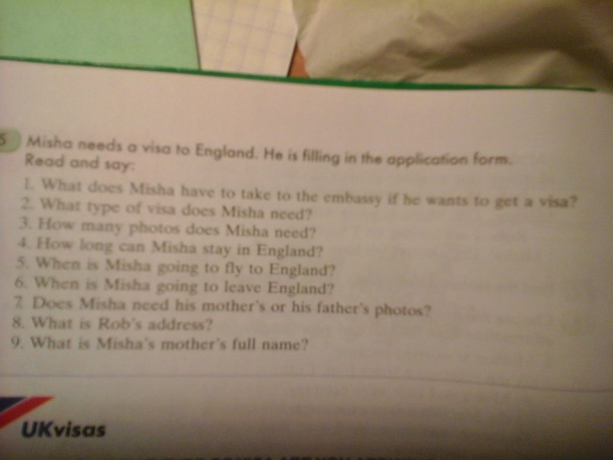 Миша нуждается в визе в Англию. он заполняет заявку. Прочитай и скажи: