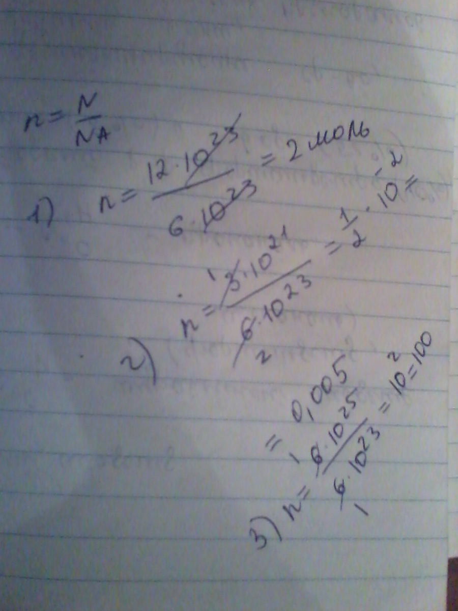 Определить количество веществ ,в котором заключено ;10*12^23 молекул;3*10^21 молекул;6*10^25 молекул