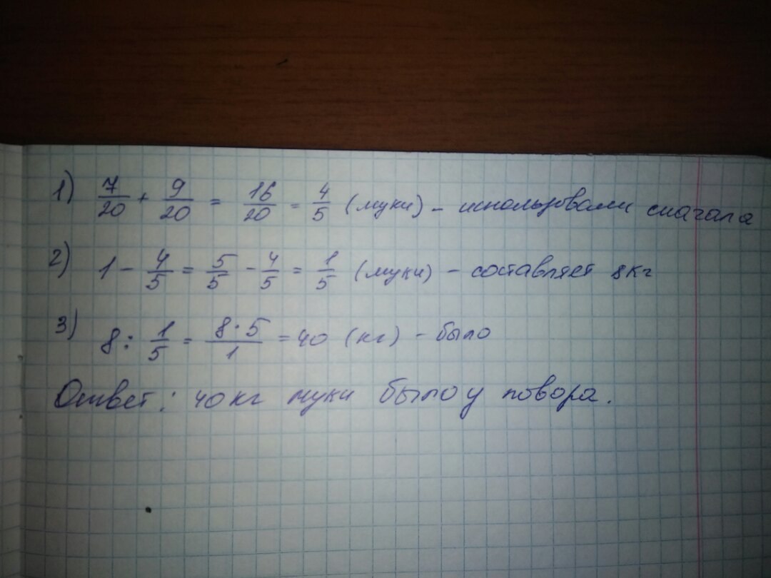 из 720 всей муки повар испек бублики 920 пошло на булочки а остальные 8кг-на ватрушки . Сколько килограмм муки было у повара вначале ?