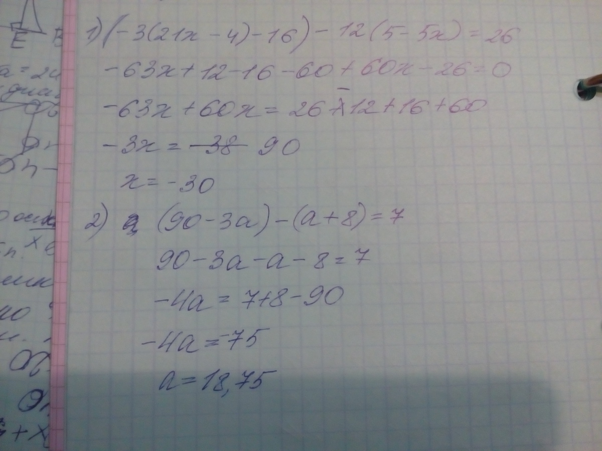 значение выражения. -3(21х-4)-16 больше значение выражения 12(5-5х) на 26