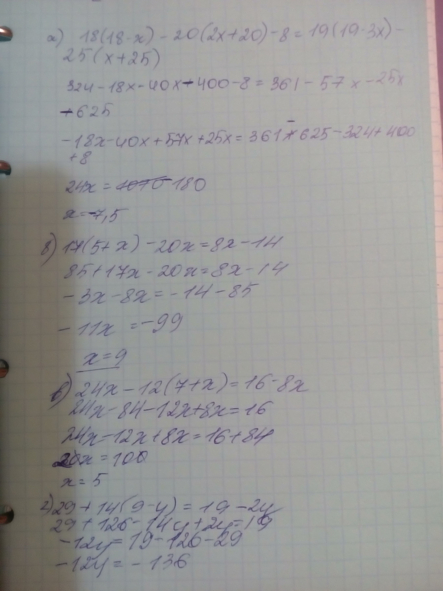 А) 18(18-х) -20(2х+20)- 8=19(19-3х)-25(х+25)