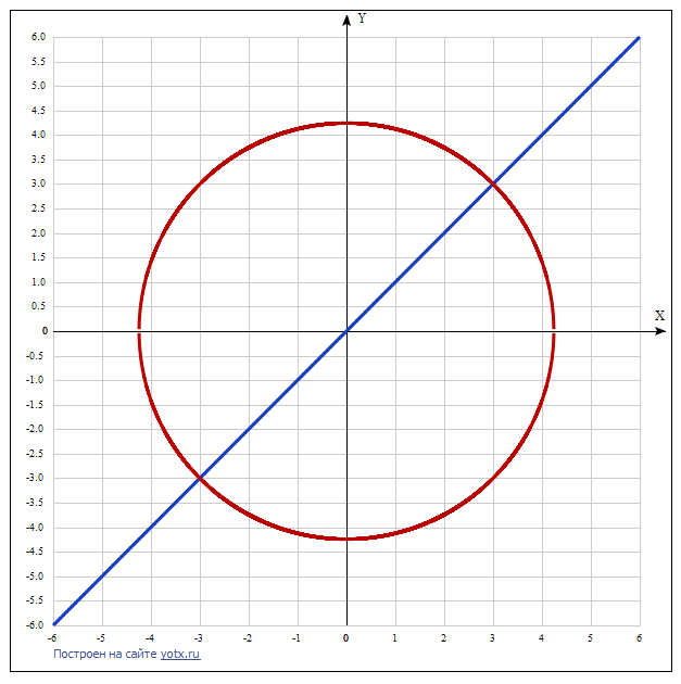 Вторя линия - окружность радиусом √18 = 4.242641.