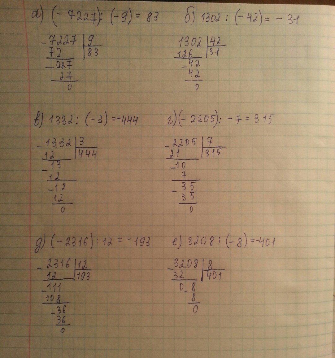 в) x=-13*-5=65 (чтобы найти неизвестное делимое, нужно делитель умножить на частное)