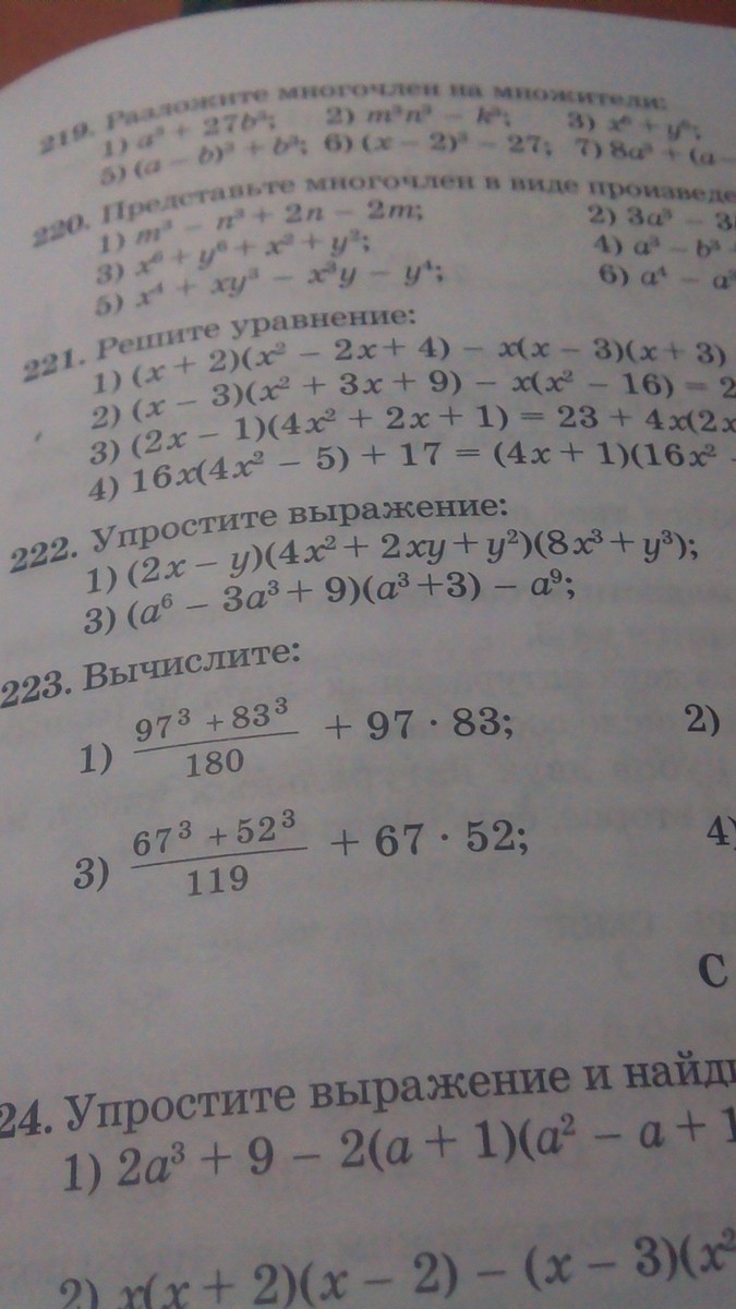 1.(2х-у)(4х^2+2ху+2у^2)(8х^3+у)=(8х^3+у^3)(8х^3+у^3)=64х6-у^6