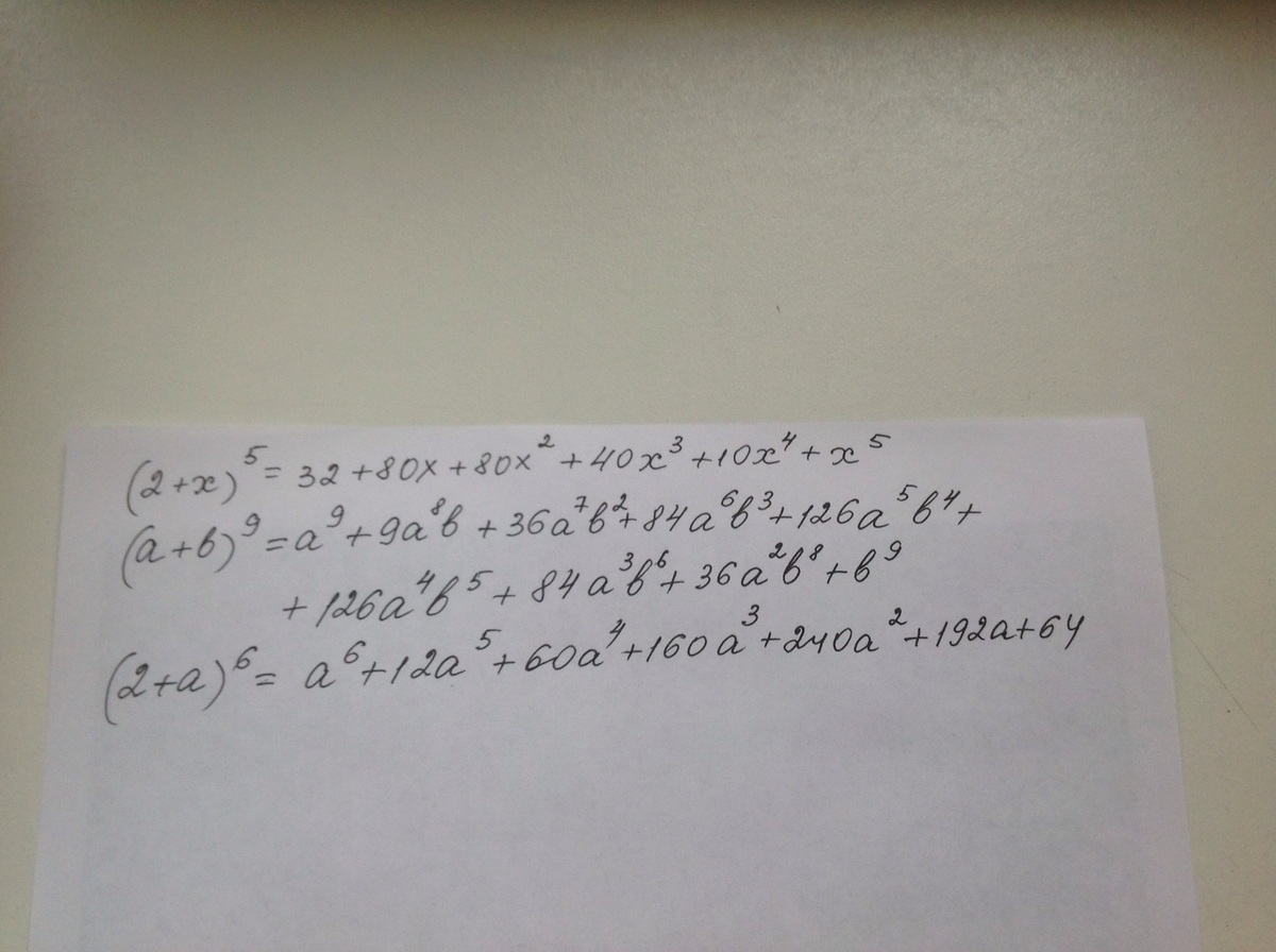 (a+b)^9=a^9+9a^8b+36a^7b^2+84a^6b^3+126a^5b^4+126a^4b^5+84a^3b^6+36a^2b^7+9ab^8+b^9