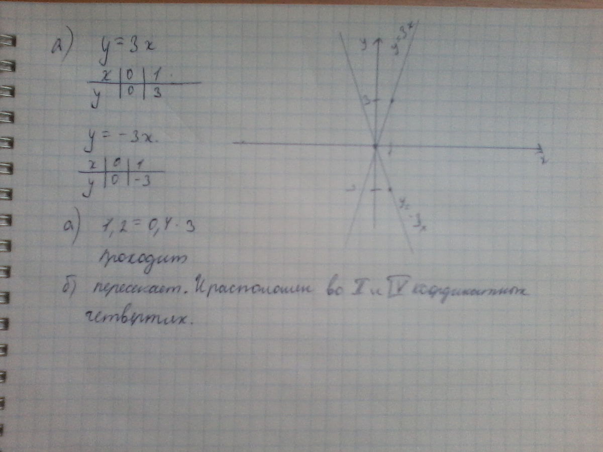 Постройте график функции у=3х а)Проходит ли график данной функции через точку А(0.4;1.2)