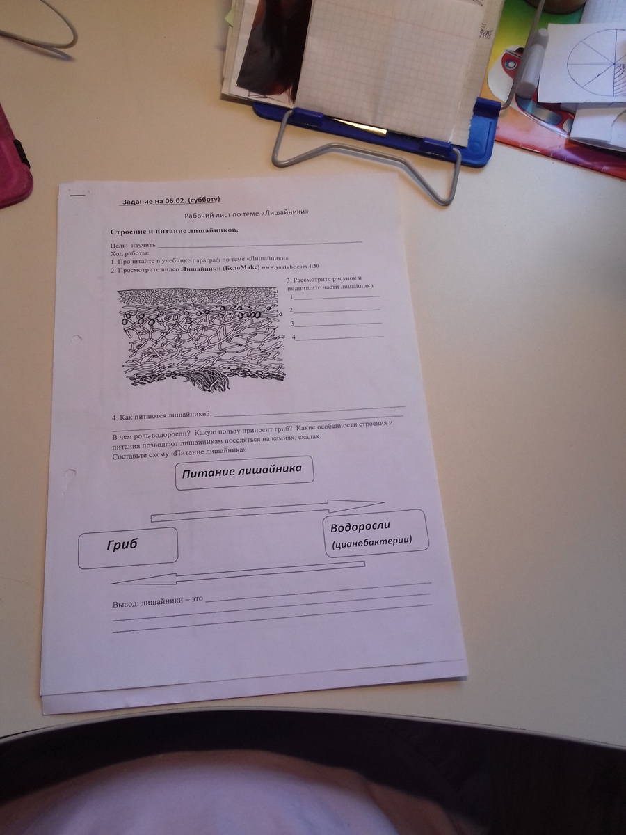 4)Важным компонентом в питании лишайников является азот. Те лишайники, которые имеют в качестве фикобионта зеленые водоросли(а их большинство), воспринимают соединения азота изводных растворов, когда их слоевища пропитываются водой.Азотобактер, получая главным образом от водоросли углеводы, усваивает элементарный азот и этим обеспечивает в значительной степени азотистое питание всего лишайника.Лишайник питается как гриб-гетеротрофно и как водоросль-фотосинтезируя.Кроме того,впитыват влагу с мин.солями.
