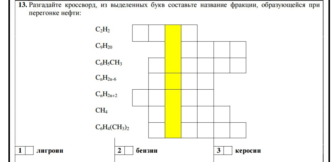 Разгадайте кроссворд, из выделенных букв составьте название фракции, образующейся при