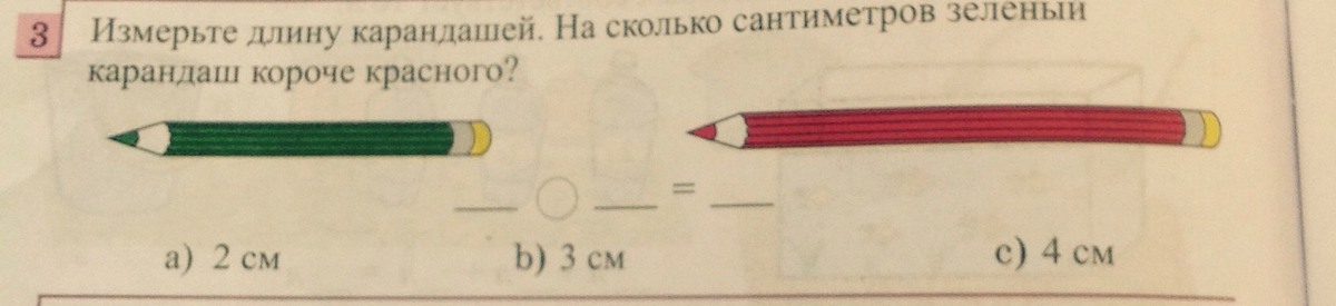 на 2 сантиметра зелёный карандаш меньше