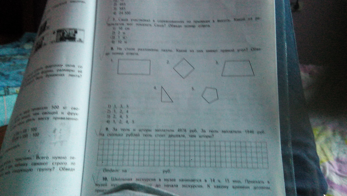 на столе разложены пазлы.какие из них имеют прямой угол и внизу номера скажите пожалуйста