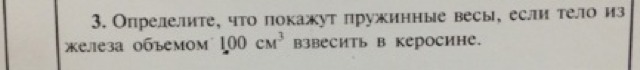 V(железа)g (р(железа-р(керосина))=0,0001м3 х 10Н/кг (7800кг/м3 - 800кг/м3)=7Н