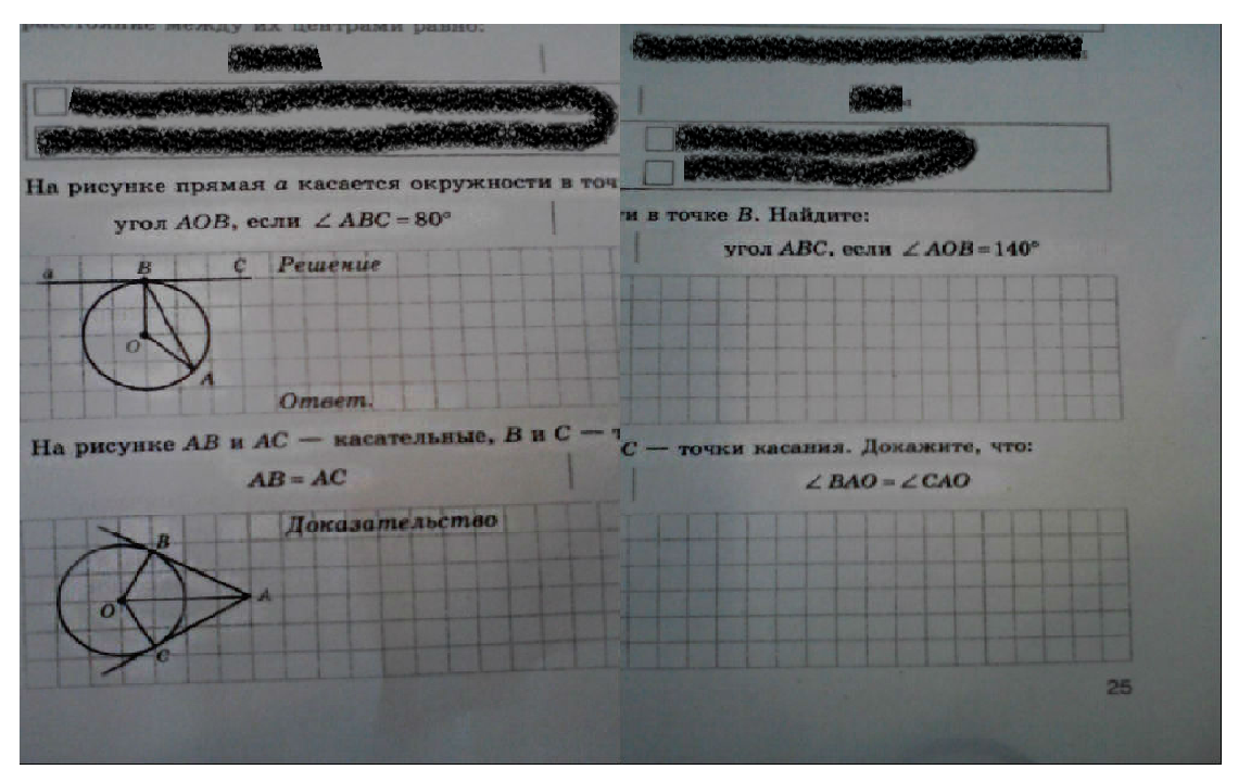 доказывается через равенство треугольников по трем сторонам: ОВ=ОА - радиусы, АВ=АС-касательные и АО-общая.