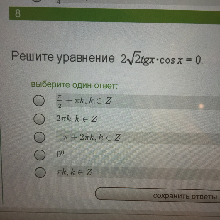 2sqrt2tgx*cosx=0\frac{sinx}{cosx}*cosx=0\sinx=0\x=pi n, ; nin Z