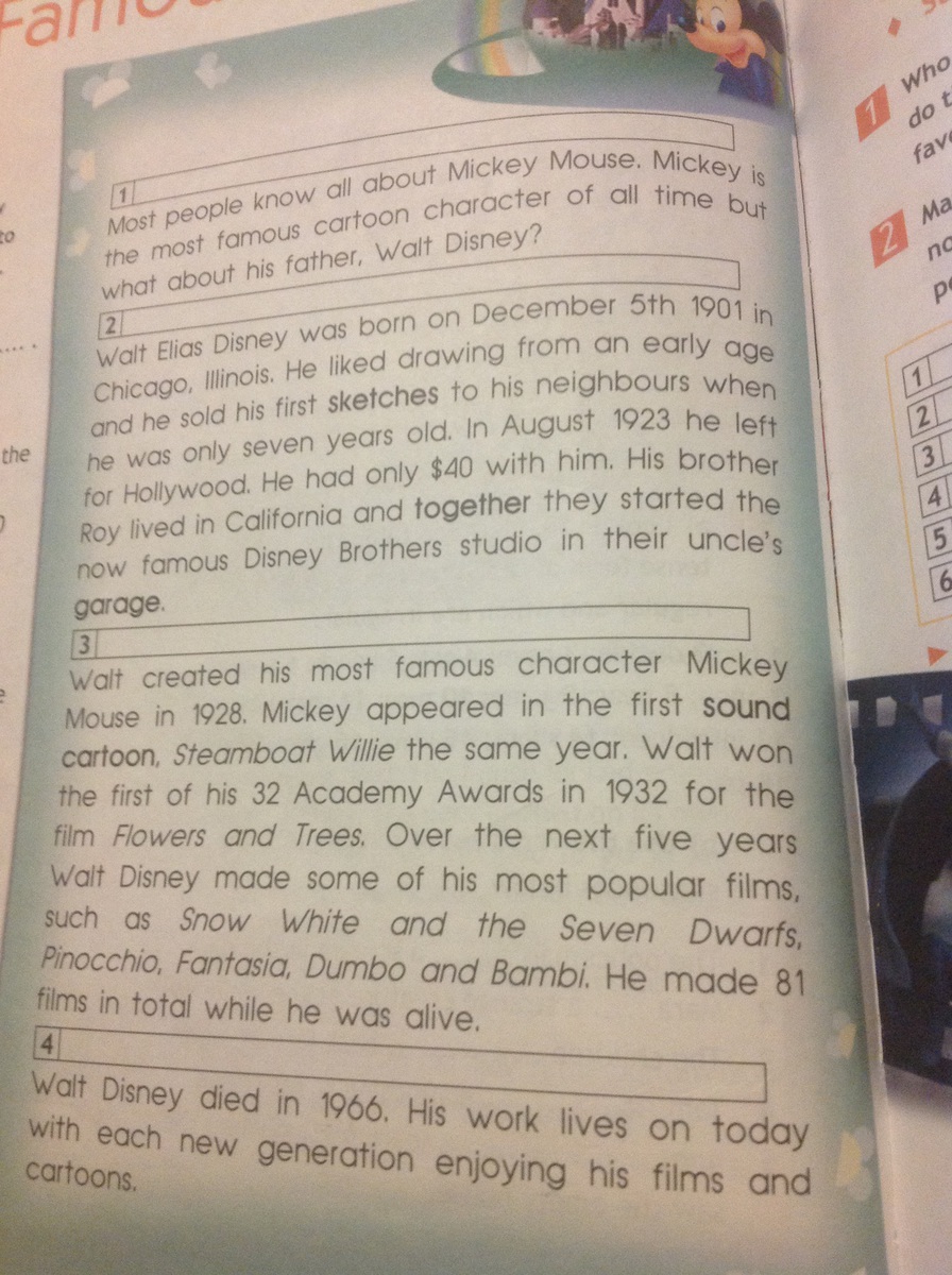 4) Уолт Дисней умер в 1966. Его работа живет сегодня каждое новое поколение наслаждается его фильмами и мультфильмами.