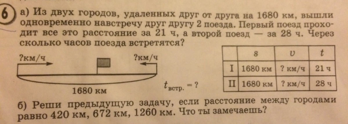 1) 1680 : 21 = 80 км/ч скорость одного поезда