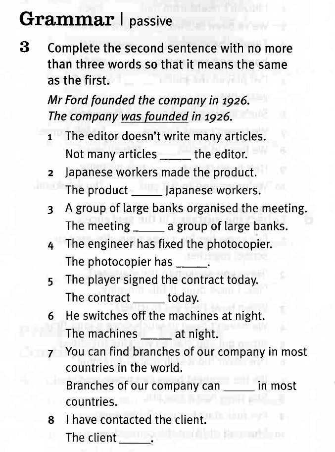 1 are written 2 was made 3 was organised 4 been fixed 5 was signed 6 are switched off 7 be found 8 has been contacted
