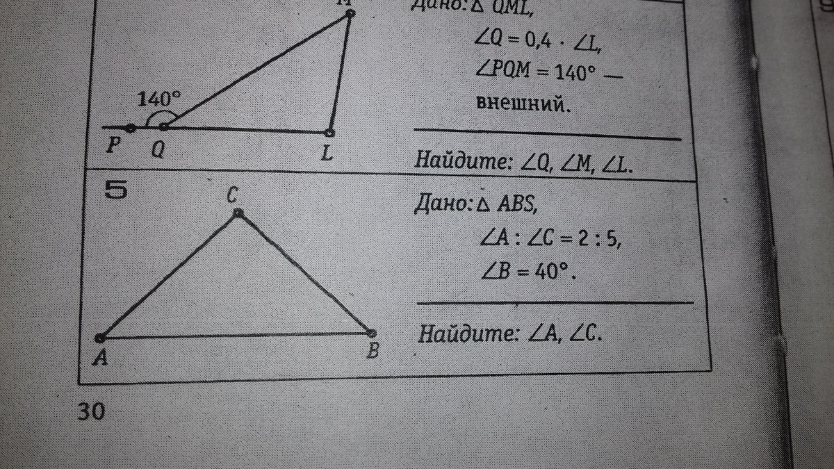 треугольник QML . угол Q=0,4*угол L . угол PQM=140 градусов - внешний