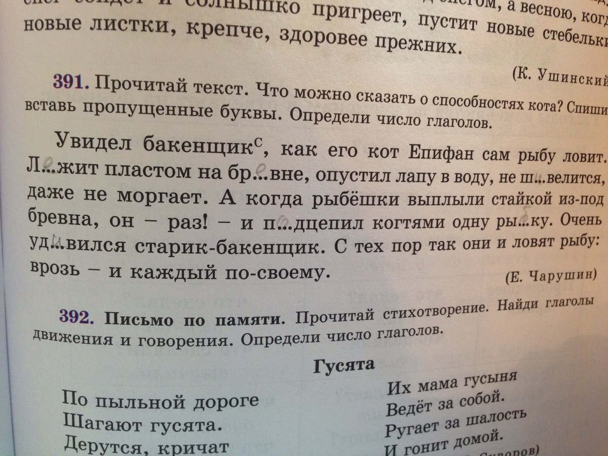 Увидел-ед.ч., ловит-ед.ч., лежит-ед.ч., опустил-ед.ч., не шевелится-ед.ч., не моргает-ед.ч., выплыли-множ.ч., подцепил-ед.ч., удивился-ед.ч., ловят-множ.ч.