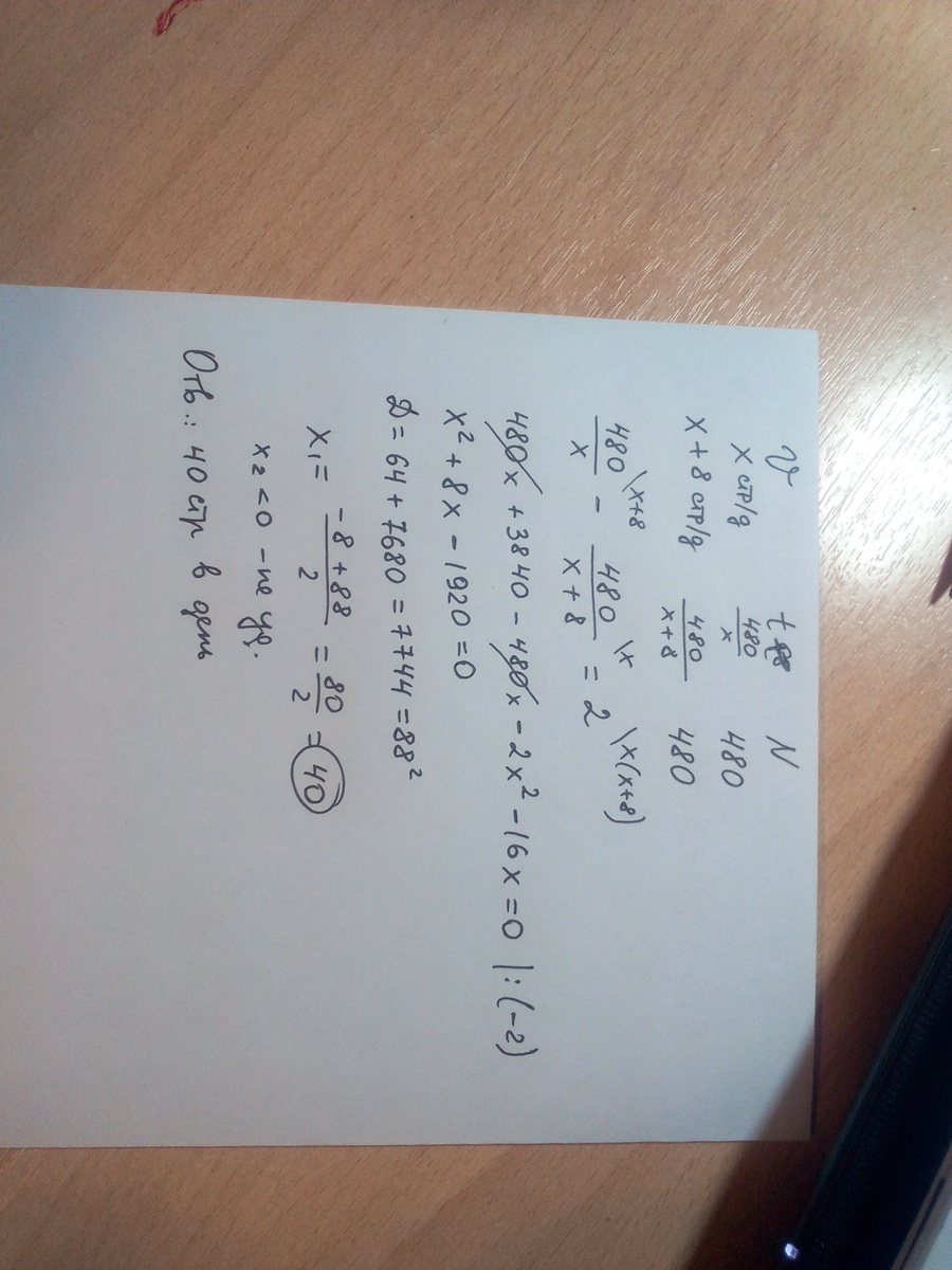 писатель хочет набрать на компьютере рукопись объемом 480 страниц.Если он будет набирать на 8 страниц в день больше,чем запланировал,то закончит работу на 2 дня раньше.Сколько страниц в день планирует набирать писатель