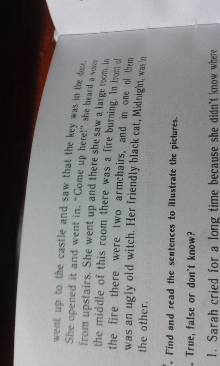 "Не могли бы вы повторить, пожалуйста?"-сказала Сара. "Это было сложно запомнить." "Конечно же, нет,"-ответило дерево. "Вам, молодым людям, следует научиться работать без чужой помощи. Ну, поторопись! Ты не можешь оставаться тут весь день. Используй свою голову и ноги." И оно грустно взмахнула листьями.