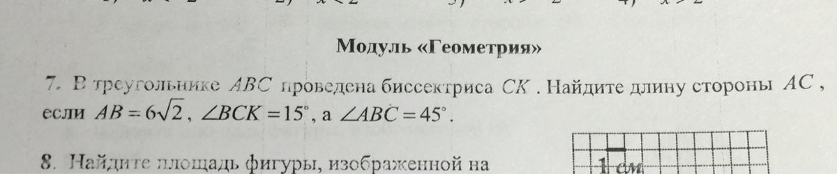 ∠АСВ = 15+15 = 30, по теореме синусов имеем:6√2/sin30 = AC/sin45