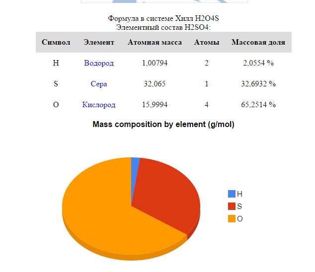 доля кислорода в H2SO4 - 65,2514%
