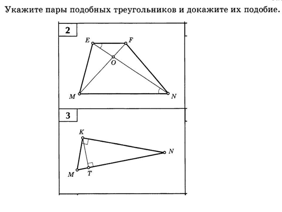 1. EFO ~ MNO т к угол Е=уголN и F=M как накрест лежащие